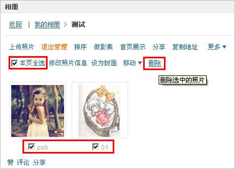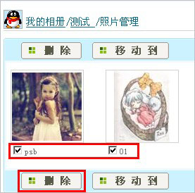 3、在需要删除的照片前面打上勾,点击“删除”即可。