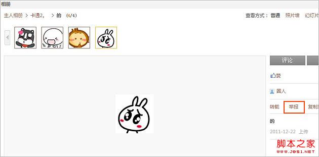 若他人QQ空间相册涉及到上传不良图片,您可以进入他人相册,打开不良图片后,在页面右边点击“举报”按钮,如图: