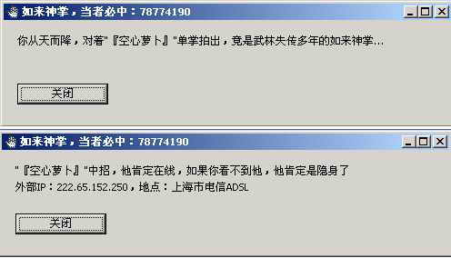 上边给出了发招,及中招后的效果图,不错吧?中招后会用绿色显示呢,嘿嘿