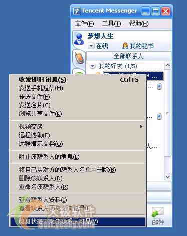 在上网的时候,QQ的在线交流给我们提供了很大的方便。当你工作时,如果不想被打扰的话,可以把QQ的在线状态设为“隐身”。这样自己的头像在好友的QQ里是灰色的,所有好友都看不到你在线。但有时你可能会希望即使你身处“隐身”状态,也可以单独让某位好友看到自己是在线的。这种想法是不是可能的呢?当然可以!