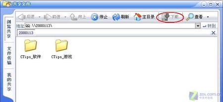 经过简单的设置后,我们不关闭服务器,并让其上的QQ一直运行。我们回家后,直接登录QQ,然后单击“QQ菜单→工具→共享文件”命令,在弹出的“共享文件”窗口中单击“浏览共享”标签,并在地址栏中输入相应的QQ号,其格式为QQ:\\ QQ号码,本例为:QQ:\\588888\,如图5。看到共享文件夹后双击进入该目录,然后选定一个文件后单击窗口右上方的“下载”按钮即可开始下载公司的服务器上的文件到本地硬盘,就算你公司有防火墙也没事,因为QQ的文件夹共享功能就能穿透防火墙。当然,为了更好更稳定地使用,我建议你们能够成为QQ的会员。