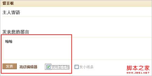 三、当您设置好签名档后,请您进入好友空间,在留言板中写上您想对好友说的话,勾选上使用签名档,点击发表;