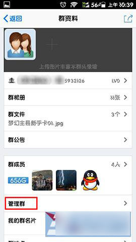 1)首先在手机QQ中打开需要禁言的群,然后点击右上角的图标,进入群资料之后,我们可以看到“管理群”这一选项,然后点击进去。(如下图所示)