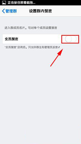 2)在“管理群”中点击一下“设置群内禁言”,然后在“全员禁言”中点击一下,就可以设置成功了!(如下图所示)