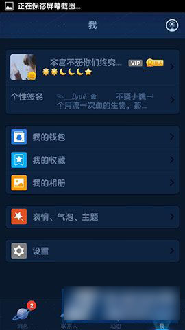 2)在“我”中,我们可以在右上角看到一个图标,点击一下,系统就会自动的切换到夜间模式了。这对于晚上躺在床上玩手机QQ的朋友可是一大福利哟!(如下图所示)
