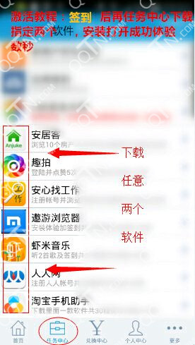 2、下载安装后,第一首先点击签到,然后再随便找两个应用下载,就可以啦,很简单吧!!