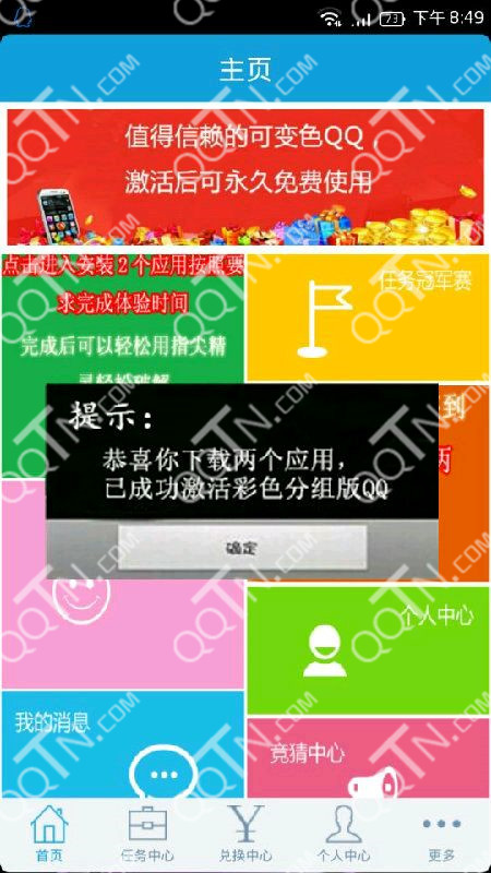 4、成功安装2个应用之后,系统会提示你已成功激活彩色分组版QQ;