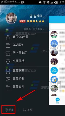 1)打开手机QQ,点击左上角的【头像】,然后点击【设置】。(如下图)