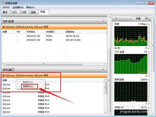 在侦听端口那里 右键映像 然后点击 “选择列” 如图