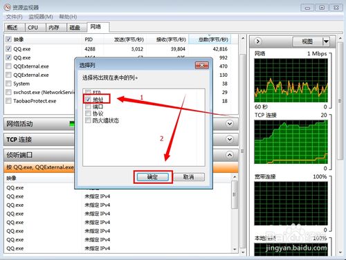 在选择列设置窗口里打钩“地址” 然后点击“确定” 如图
