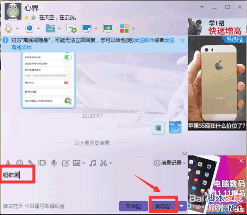 5、现在,又发送一个信息,看看对方能否收到,如图: