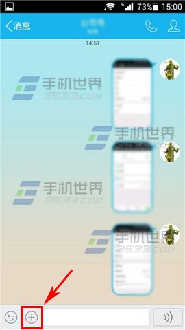 1)打开手机QQ,选择一位【好友】进入聊天窗口,点击左下方的【+】图标。(如下图)