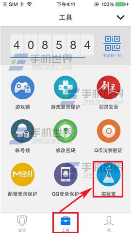 1)首先打开QQ安全中心,在【工具】界面点击【实验室】。(如下图)