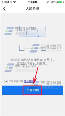 2)进入界面点击【人脸验证】,点击【立即创建】。(如下图)