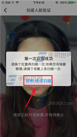4)然后弹出窗口点击【好的,继续扫描】,用户总共要扫描三次哦,然后自动跳转界面点击【人脸启动密码】。(如下图)