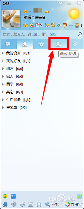 想要创建QQ群的朋友们,先登陆上自己的QQ,在QQ的主面板上找到并且点击那个“群/讨论组”的图标