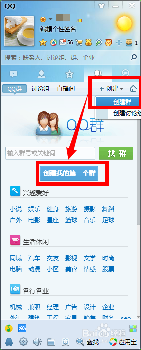 很多时候,很多小伙伴都希望用自己的QQ来创建一个属于自己的QQ群,比如班级建个QQ群;或者社团建个QQ交流群之类的。建立一个志同道合的QQ群,可以方便大家在里面互相讨论一些大家所关心的问题。那么,怎么创建QQ群呢?