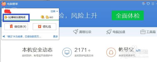 每天登陆QQ电脑管家可以增加升级速度