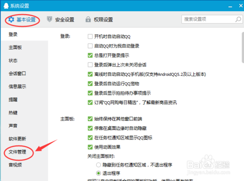 3、打开设置后,在基本设置项选择《文件管理》
