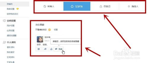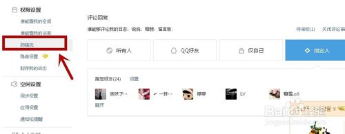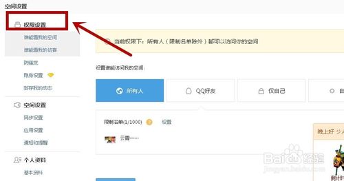 5、在界面中,选择”所有人、QQ好友、仅自己、指定好友“等,如图: