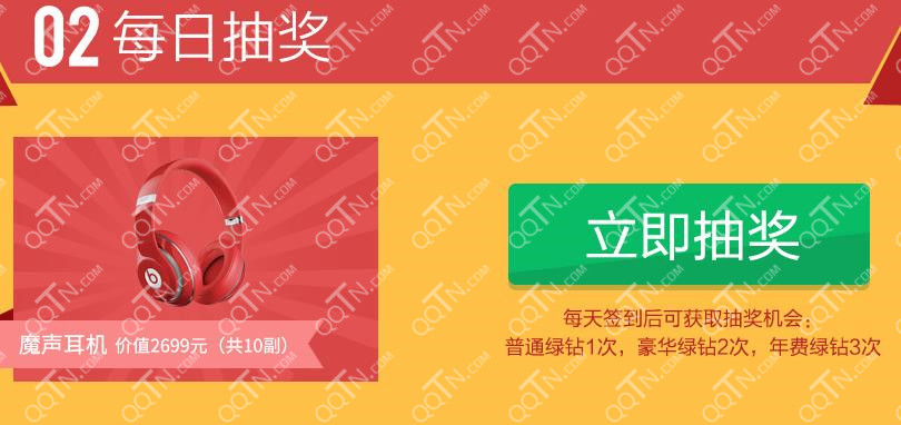 2、活动期间,所有绿钻用户/豪华绿钻用户均可参与 签到有礼、每日抽奖,以及每月免费领取礼品的福利!
