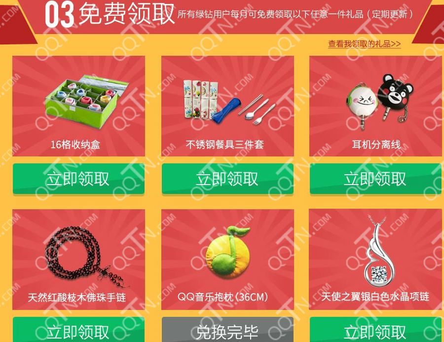 所有绿钻用户每月可免费领取以下任意一件礼品,当然啦,是需要大家出邮费的!