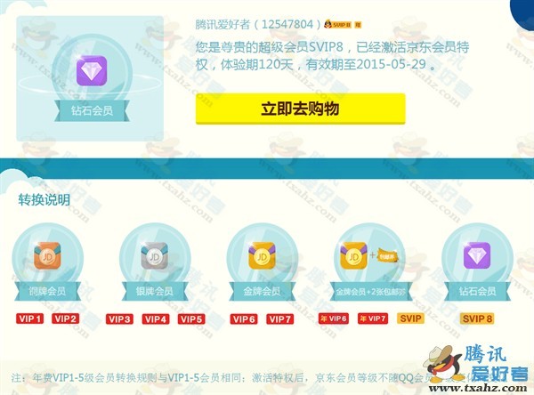 注:年费VIP1-5级会员转换规则与VIP1-5会员相同;激活特权后,京东会员等级不随QQ会员等级变化而变化