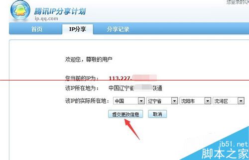 7、提交以后,我们点击下面的“提交更改信息”即可,这样,我们的qq显示地址与实际就相符了,如图所示。