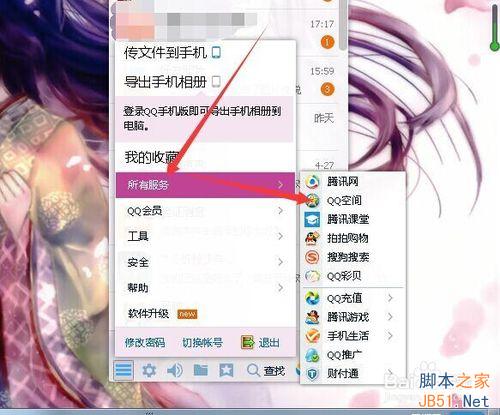 在所有功能里选择“所有服务”点击,右边会出现相应的功能选项,这时。我们点击“QQ空间”。