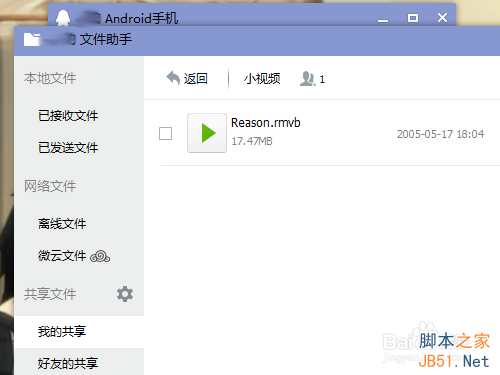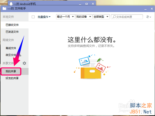 打开我的文件助手,点击左边[共享文件]下面的[我的共享]