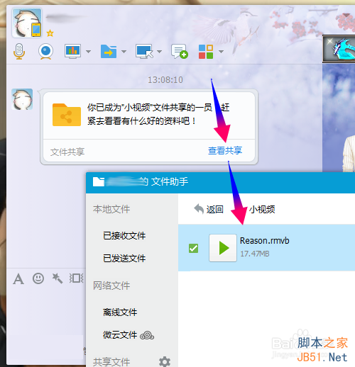 好友只需要点击[查看共享],就自动打开文件助手,能够查看你当前共享的文件了