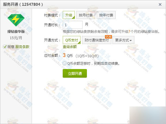 QQ绿钻3元升级QQ绿钻豪华版 抽奖得终身绿钻、QQ公仔等实物