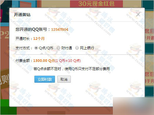 官方开正规年费QQ黄钻 81.9元/年【90Q币按9.1折计算是81.9元】