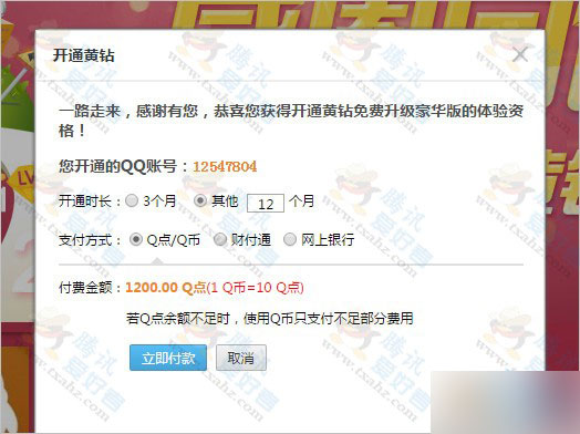10Q币开QQ黄钻豪华版活动 最低只需 109.2元/年【120Q币按9.1折计算是109.2元】