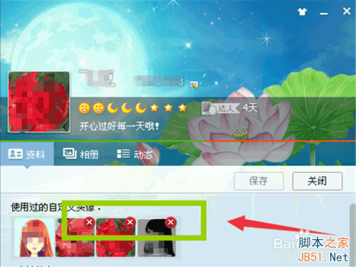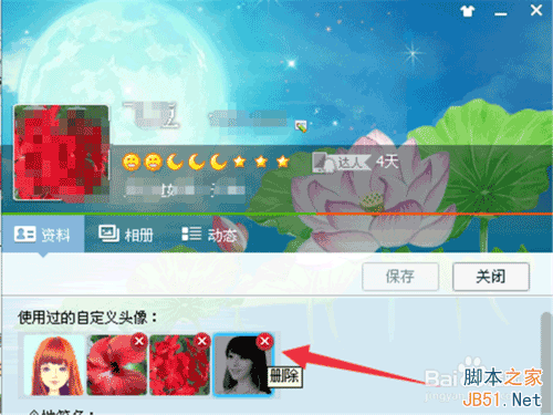 6、可以把不想要的删除。来举个例子说下:本人曾经用过的QQ头像中有一个是黑白的,把黑白的那个头像去掉,就在黑白的头像上打叉处点一下,
