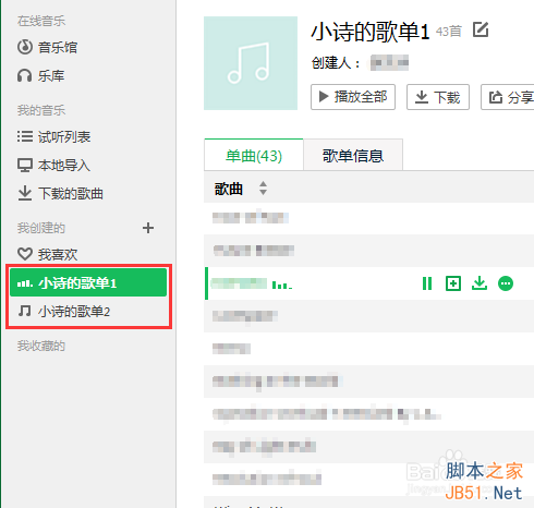 6、上面的方法都会了吗,因此你还可以照样画胡芦创建其他歌单,然后再用同样的方法把歌曲添加到新的歌单,这样以后切换歌曲的类型便简单多了。