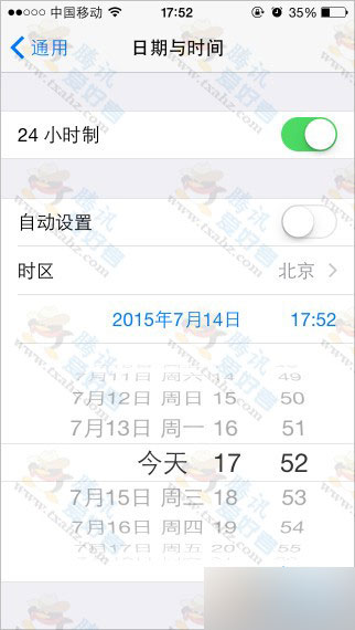 2、按Home键返回桌面,设置 - 通用 - 日期和时间,将时间调到两小时以后并保存(记得关闭自动设置),到此步骤QQ音乐是没有加速的。如下图: