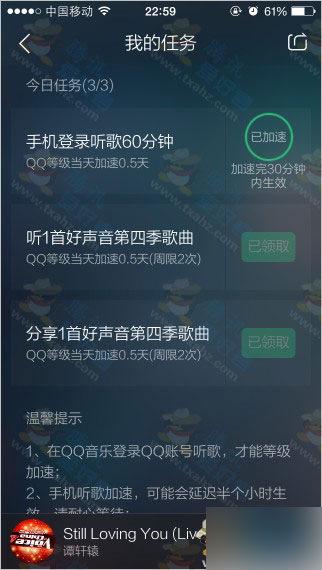手机版QQ音乐听好声音歌曲加速QQ升级已经开启 亲测加速成功