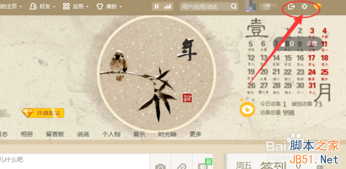 3、进入QQ空间,我们就找到空间右上角的一个“设置”按钮,然后点击进入。