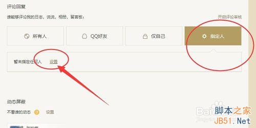 5、当然,如果想要针对部分好友,选择后面的“指定人”,然后对指定的好友进行设置,之后你指定的这部分人就可以不需要审核就可以评论留言了。