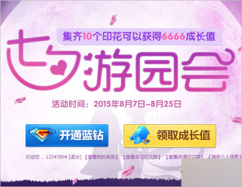 七夕游园会 QQ蓝钻秒7活动再次来袭 开蓝钻领取6666成长值 ipad QB等
