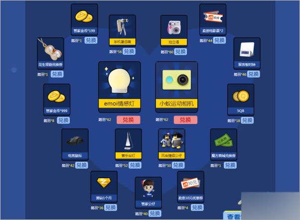 收集鹊羽一定数量可以兑换Q币、QQ黄钻、QQ公仔、电竞鼠标等实物