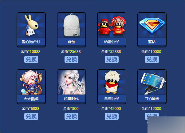 管家金币也可以兑换QQ蓝钻、QQ公仔等实物。