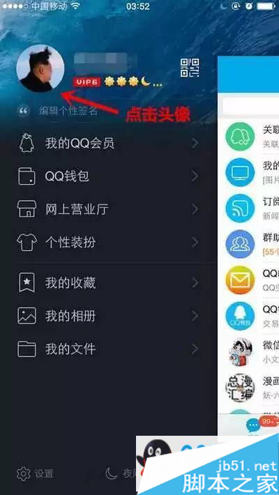 1.手机QQ也同样可以装逼的,首先是进入QQ,点击头像