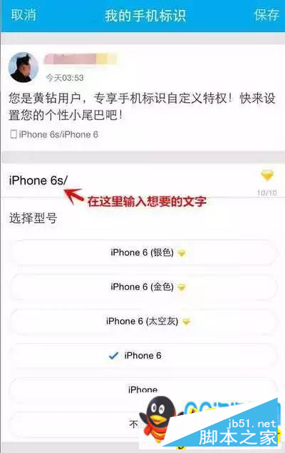 总之连字数限制都一样,所以只能输入“iPhone 6s/”,系统会自动在后方加上你现在的手机型号,如果是6,就选iPhone 6,如果是早期型号,选iPhone。