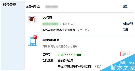 若您设置了手机帐号为主显帐号,请您先取消主显帐号后再解绑,操作如下图:
