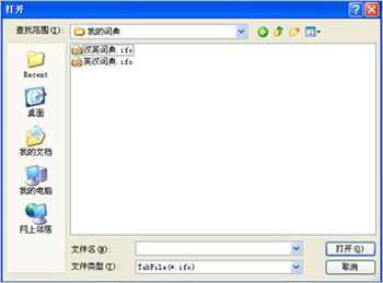 在弹出打开文件对话框的本地词典的存储路径下选择要加载的词典;可选的文件类型是ifo类型词库。
