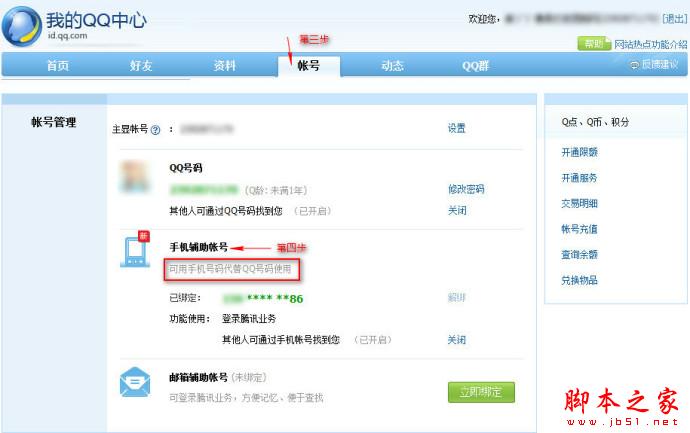 今天小编教大家把手机号码设置成QQ号码。外出谈业务,泡妞身份的象征。当然,这个前提是你的手机和你的QQ必须绑定的。有人问,这样子有什么好处?其实我觉得只有一个,就是方便别人,别人加你时直接输入手机号码查找,就可以加你为好友了。看看怎么实现呢?其实只需要简单的四步设置即可。看图: