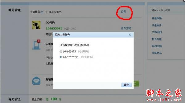 点击红色区域内的设置,然后就会跳出来你的QQ号码和绑定的手机号码。