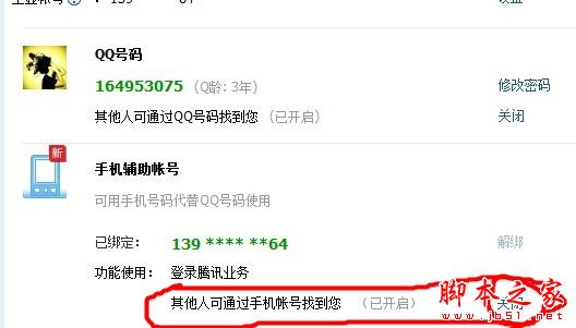 这里还需要设置一下,别人就可以通过手机号码直接查找你。并加你为好友。红色区域内,我这个是已经开通的了,所以大家看到的是关闭两个字。当然,没有开通的,你点一下开通,就会变成像我的这样。